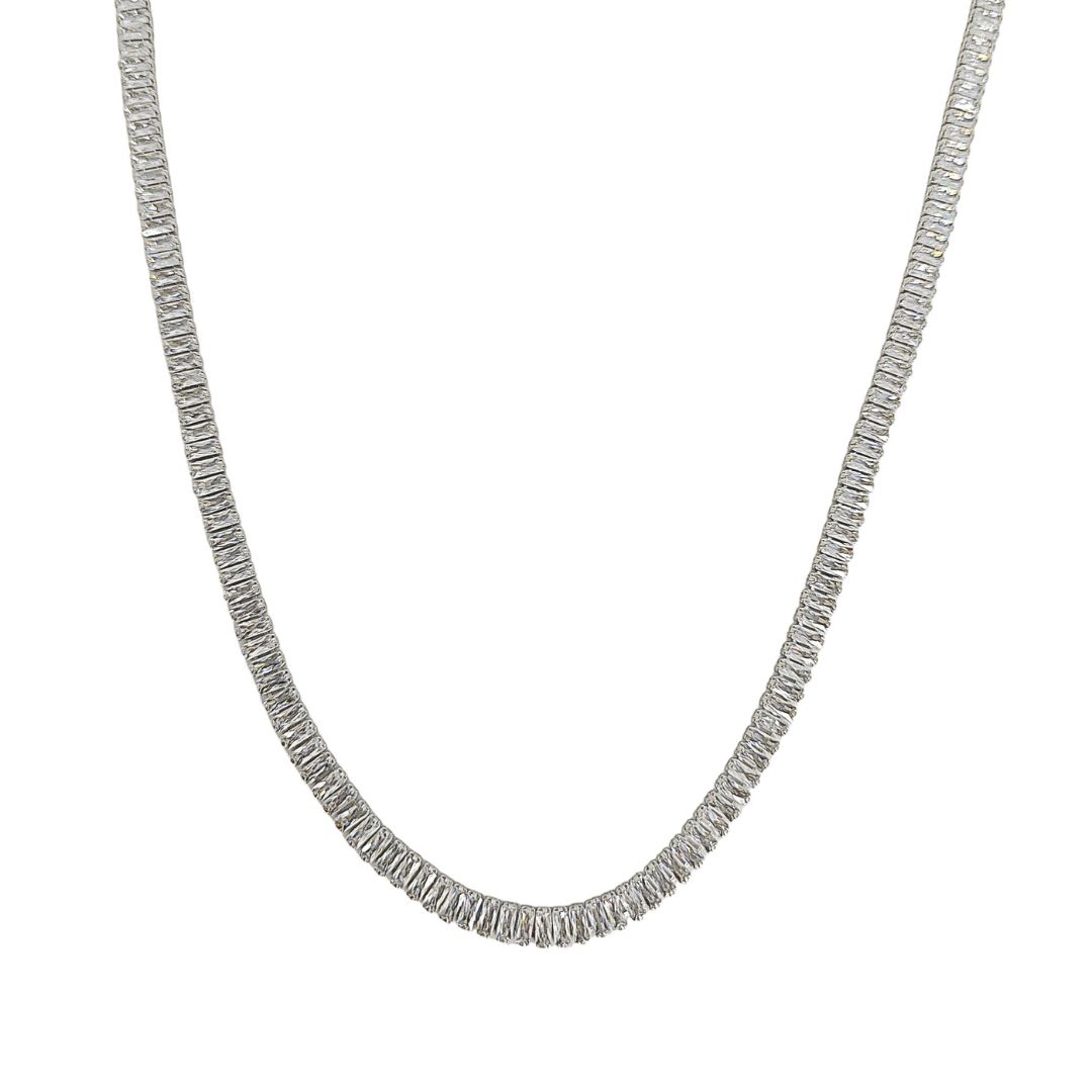 Choker em banho de ródio branco com zircônias cristais baguetes