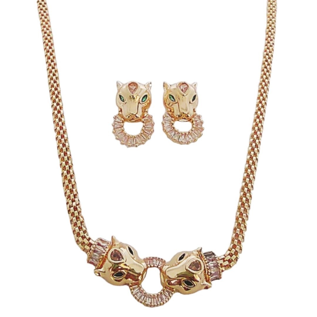 Conjunto em banho de ouro 18k cabeça de tigre com zircônias verdes e zircônias baguetes