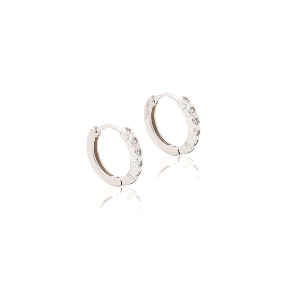 Brinco argolinha em prata 925 com zircônias brancas em cravação inglesa