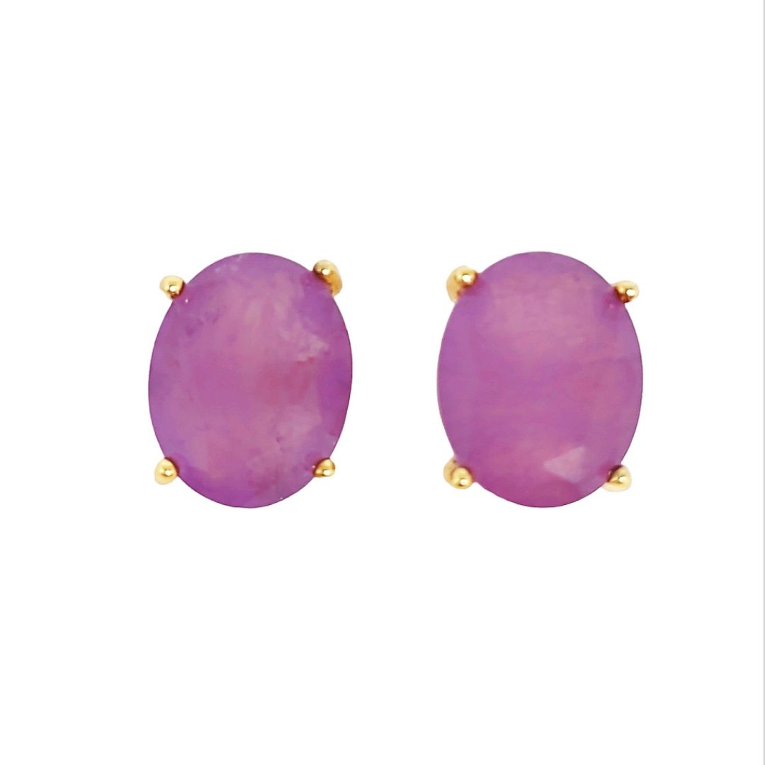 Brinco oval em banho de ouro 18k com pedra fusion roxa