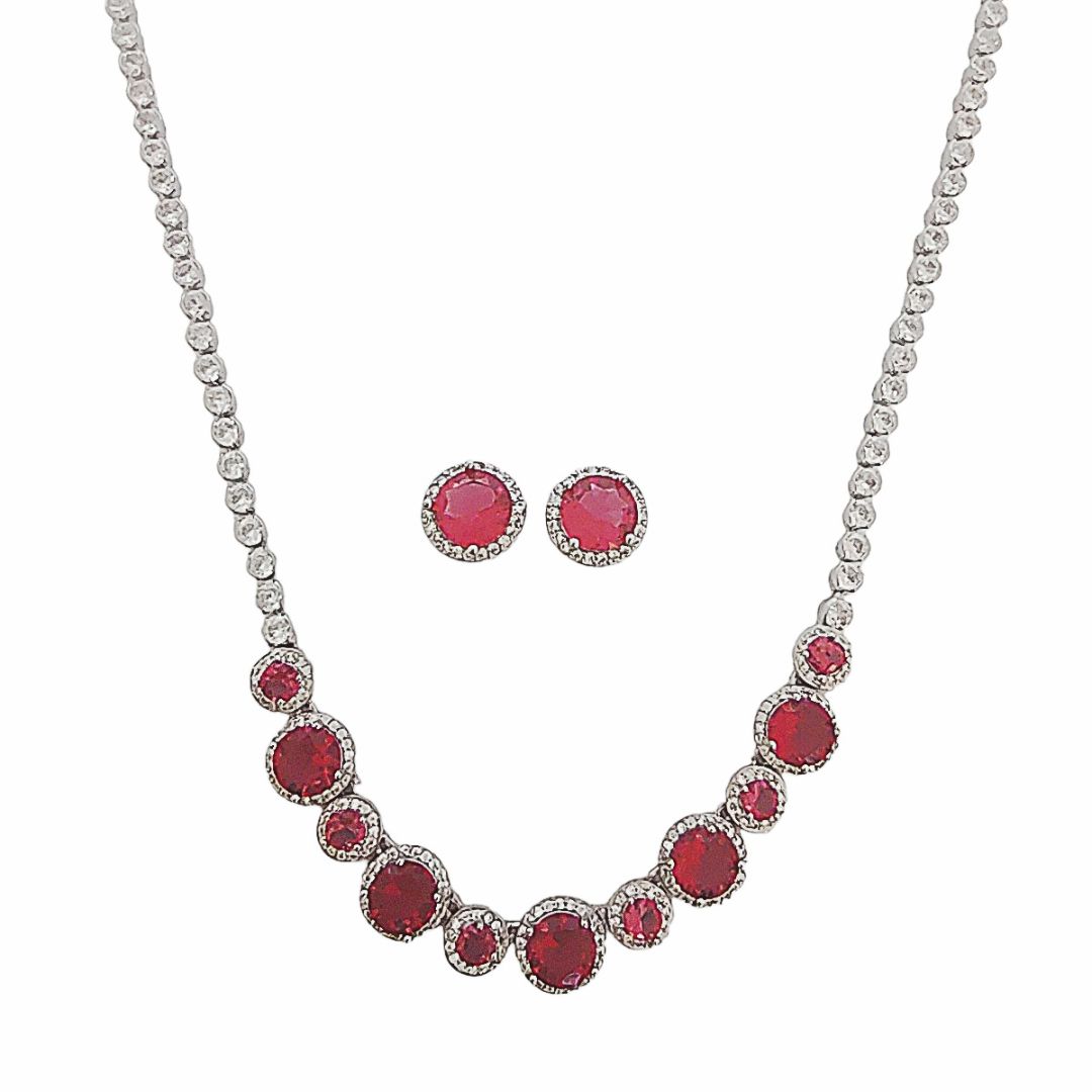 Colar com cravação inglesa banhado em ródio branco cravejado de zircônia cristal e zircônia rosa